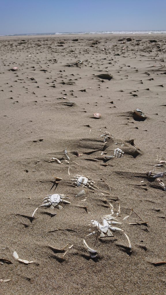 Évidemment, nous imaginions le pire. Les émanations toxiques d’algues auraient asphyxié les pauvres bêtes, des mouettes tueuses transformées en escadron de la mort les auraient dévoré tous en même temps, une vague de chaleur exceptionnelle aurait eu raison de leurs déambulations amphibies… Et bien non, vous pouvez être rassurés, rien de tout cela n’est en cause. Les crabes muent, tout simplement, et dans l’Oregon ils le font tous en même temps !