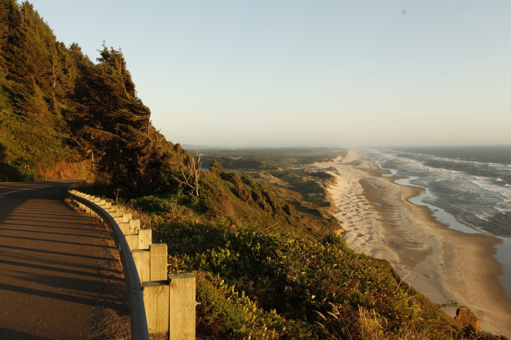 A l’embouchure de la Columbia River, Cape Disappointement au Nord, Astoria au Sud. De là, nous nous lançons sur la fameuse Coastal Highway 101 qui nous permet de coller au littoral. A mi-chemin, les plages commencent leur mue, et au détour d’un virage nous découvrons des dunes.