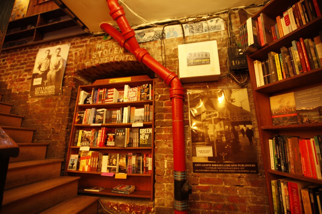 A San Francisco, c’est City Lights, sur Colombus Avenue, en face du Vesuvio café, qui en est le porte-étendard. Ouverte au début des années 50, elle est première librairie à proposer des livres de poche aux lecteurs, et publie Kerouac, Ginsberg, Burroughs, une nouvelle génération d’auteurs à la marge.