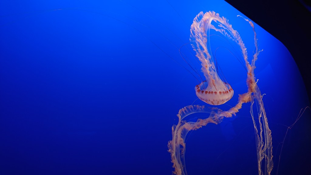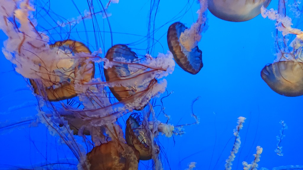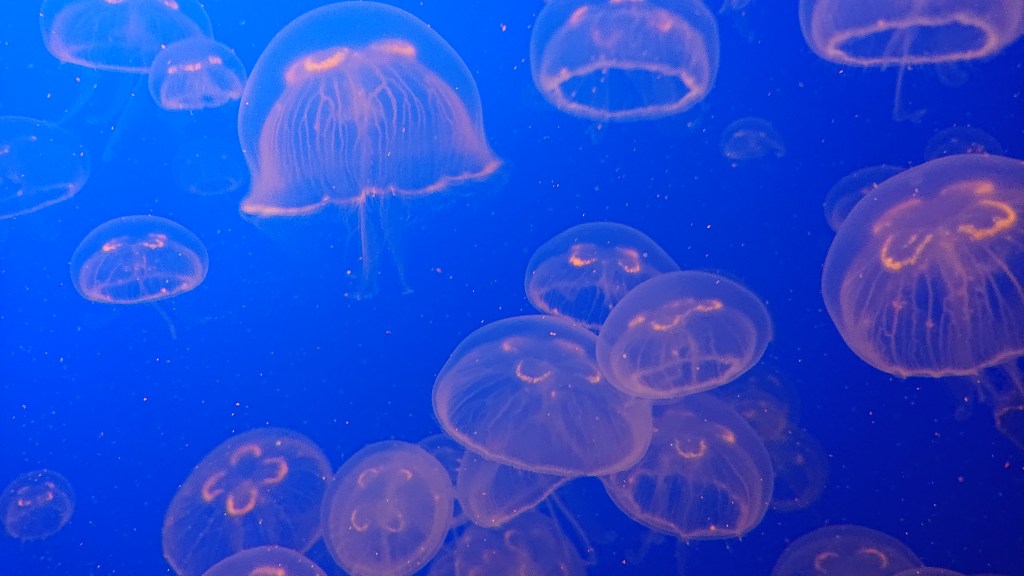 Nous sommes dimanche matin en Europe. Il fait 21 degrés à Paris, 18 dans les Charentes, 27 à Athènes. Il pleut sur La Baule et sur Knock-le-Zout. Certains d’entre vous sont probablement en train d’écouter France Inter, d’autres ont déjà allumé la télé (nul n’est parfait). Nous vous imaginons donner le biberon, être allé cherché des croissants, lire le journal ou chausser vos baskets. Certains, sans doute, font les valises, d’autres les défont, ça sent la fin de l’été. On pense à la rentrée – les juniors à leurs cartables, les seniors à leur réinscription aux pilâtes, les autres aux objectifs pénibles du dernier trimestre… Alors pour vous maintenir encore un peu dans la zénitude de l’été, alors que vous êtes en train de boire votre café, nous vous proposons d’observer pendant quelques minutes le ballet aquatique des méduses.