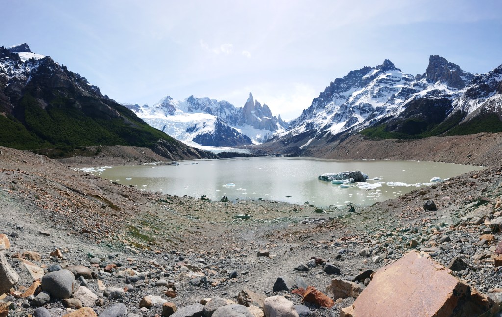 Nous partons à la rencontre du mythique Fitz Roy, 8 heures de marche aller-retour depuis le village d’El Chaltén, pour découvrir un sommet brut, sec, acéré culminant à 3 441 mètres, garde frontière entre l’Argentine et le Chili.