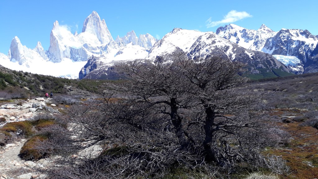 De part et d’autre du Fitz Roy, trois pics s’élancent et portent les noms de Mermoz (dont le pilier Est s’appelle Vol de Nuit), Guillaumet et Saint-Exupéry (dont la face Sud s’appelle Le Petit Prince), en hommage aux hommes qui ont bâti la légende de l’Aéropostale en Argentine.