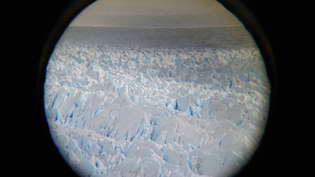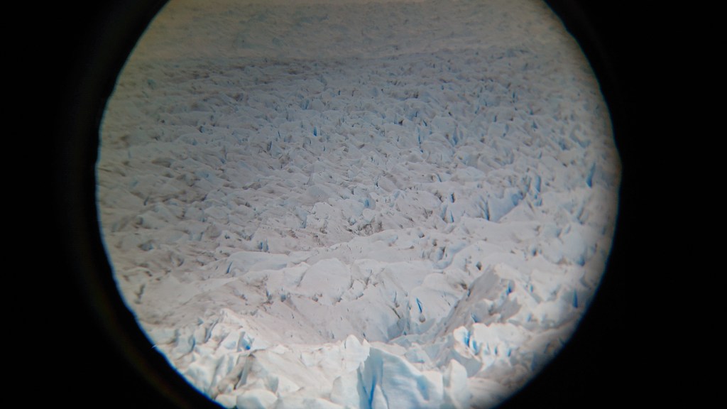 L’un des seuls glaciers de Patagonie à ne pas être en recul. Au contraire, il avance d’environ deux mètres par jour sur le lac Argentine, soit 700 mètres par an. Ce qui n’empêche pas des effondrements constants de ses murs de glace. Le front du glacier avance sur le lac face à la péninsule de Magellan. Quand il atteint la rive opposée, il divisé le lac en deux en se comportant alors comme un barrage naturel. Le niveau des eaux de ce bras montent alors jusqu’à trente mètres et commencent à entailler le glacier. Devenant moins résistant, celui-ci cède sous la pression.